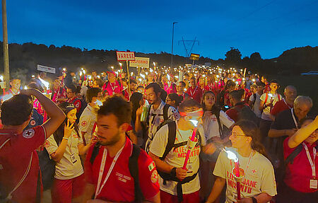 Jedes Jahr kommen an einem Wochenende rund um den 24. Juni Rotkreuzler*innen aus aller Welt in Solferino zusammen, um mit einer Fackelwanderung nach Castiglione den Weg der Verwundeten der Schlacht im Jahr 1859 zu Gedenken, die zur Gründung der Internationalen Rotkreuz- und Rothalbmondbewegung führte. Auch heuer haben sich viele Münchner Rotkreuzler*innen beteiligt.