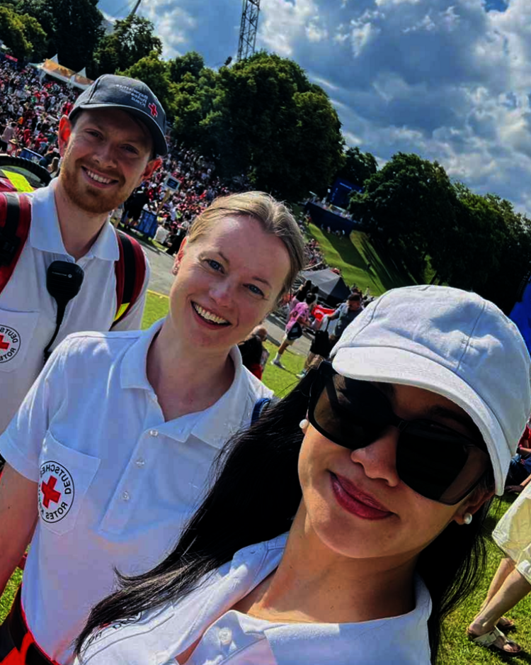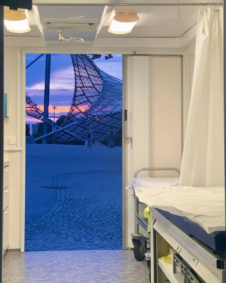 Im Olympiapark werden zahlreiche Veranstaltungen unterschiedlichster Art organisiert – von Fahrradmessen und Hindernisrennen bis hin zu Sommerfesten und Fanmeilen. Dabei arbeiten wir eng mit anderen Bereitschaften aus München zusammen. Zwischen der Olympiahalle und dem Stadion befindet sich ein Sanitätsanhänger, der als Hauptwache dient. Da sich die Veranstaltungen häufig über den gesamten Park erstrecken, sind auch mehrere Fahrzeuge des BRK als mobile Sanitätswachen unterwegs. In der Regel wird ein Einsatzleiter bestimmt, der die Einsätze von der Hauptwache koordiniert.